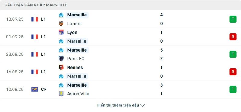 5 trận gần nhất của Marseille: W-L-W-L-W