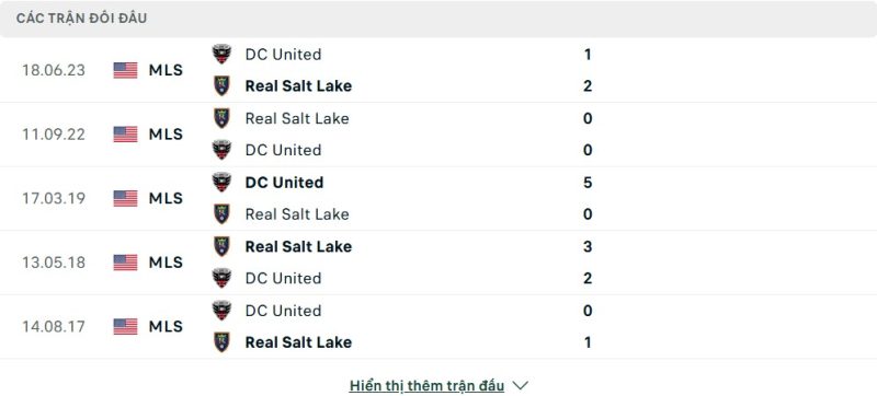 Thành tích đối đầu của Real Salt Lake vs DC United