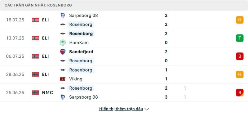 Thống kê phong độ gần đây Rosenborg vs Tromsø