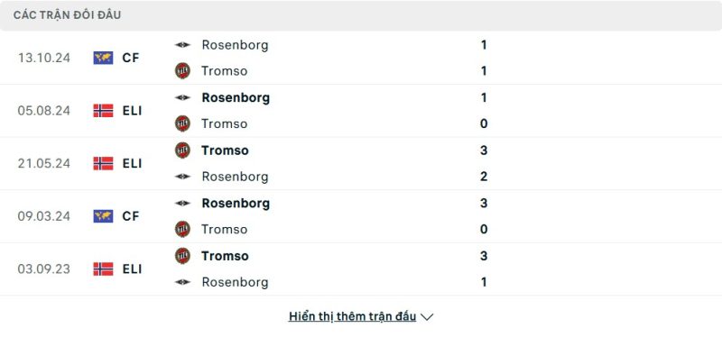 Thành tích đối đầu của Rosenborg vs Tromsø