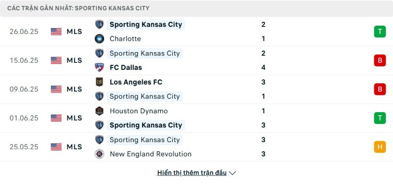 5 trận gần nhất của Sporting Kansas City: W-L-L-W-D