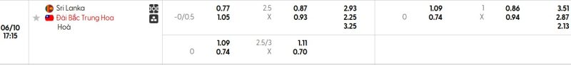 Bảng Tỷ lệ kèo bóng đá Sri Lanka vs Đài Loan