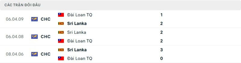 Thành tích đối đầu của Sri Lanka vs Đài Loan