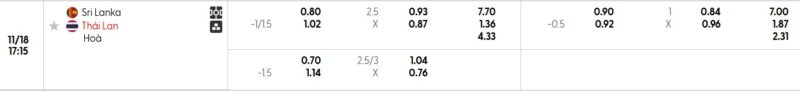 Bảng Tỷ lệ kèo bóng đá Sri Lanka vs Thái Lan