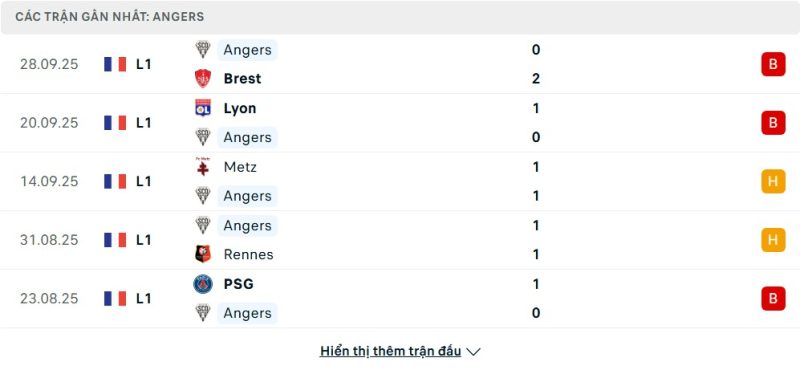 Angers đang trải qua những ngày tháng vô cùng khó khăn. Thầy trò HLV Alexandre Dujeux hiện đang đứng ở vị trí thứ 17, một vị trí trong nhóm xuống hạng, với chỉ vỏn vẹn 5 điểm sau 6 trận. Chuỗi 4 trận liên tiếp không biết đến mùi chiến thắng đã cho thấy rõ sự bế tắc của đội bóng này. Đặc biệt, hai thất bại gần nhất trước Brest 0-2 và Lyon 0-1 mà không ghi được bàn thắng nào càng khiến cho tình hình trở nên đáng báo động hơn bao giờ hết.