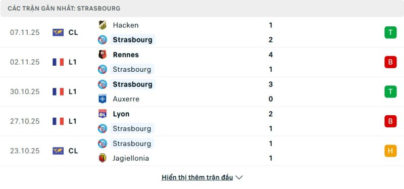 5 trận gần nhất của Strasbourg: W-L-W-L-D
