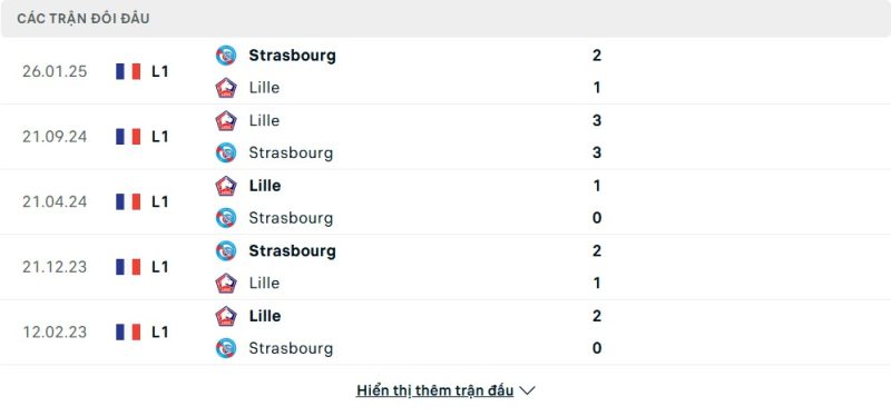 Thành tích đối đầu của Strasbourg vs Lille