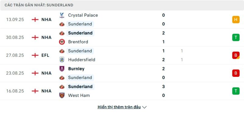 Sunderland đang có một sự khởi đầu mùa giải ấn tượng ngoài mong đợi. Sau 4 vòng đấu đầu tiên, “Mèo đen” đã giành được 7 điểm và đang vững vàng ở vị trí thứ 7 trên bảng xếp hạng. Họ khởi đầu chiến dịch bằng chiến thắng tưng bừng 3-0 trước West Ham, sau đó tiếp tục đánh bại Brentford 2-1 và gần nhất là cầm hòa Crystal Palace 0-0 ngay trên sân khách. Trận thua duy nhất của họ trước Burnley không làm lu mờ đi màn trình diễn tổng thể đầy tích cực. Đặc biệt, hàng phòng ngự của Sunderland đang chơi rất chắc chắn khi mới chỉ để thủng lưới 3 bàn.