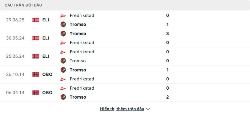 Thành tích đối đầu của Tromsø vs Fredrikstad