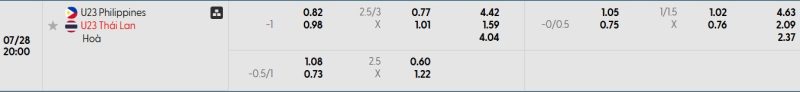 Bảng Tỷ lệ kèo bóng đá U23 Philippines vs U23 Thái Lan