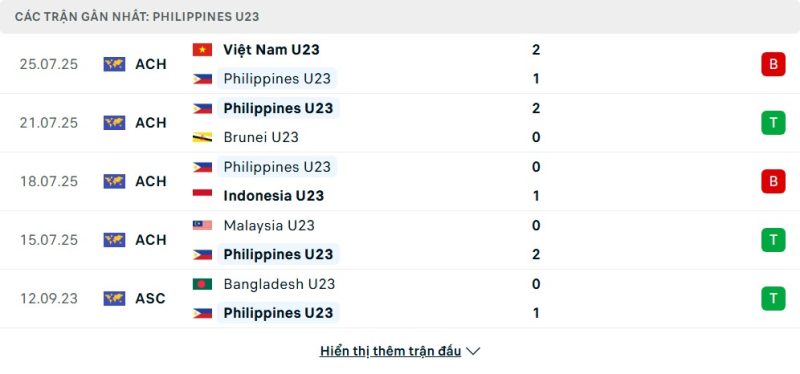 Phong độ của U23 Philippines
