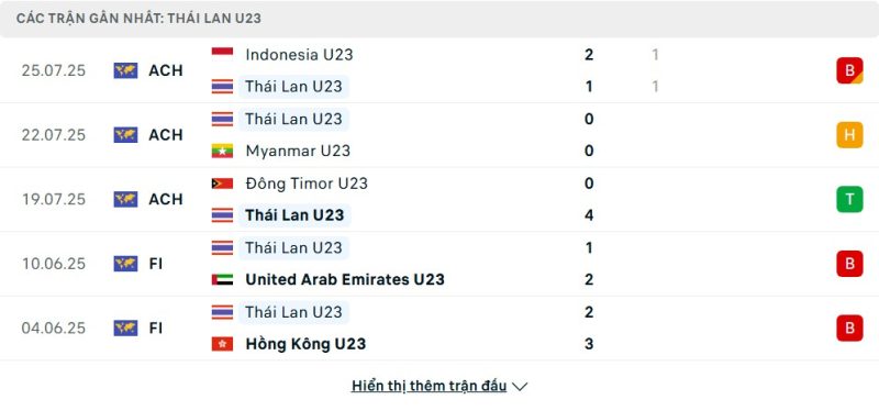 Thống kê phong độ gần đây U23 Philippines vs U23 Thái Lan