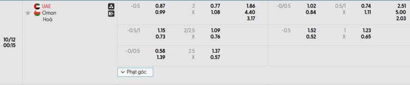 Bảng Tỷ lệ kèo bóng đá UAE vs Oman
