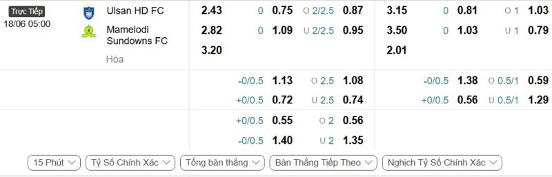 Bảng Tỷ lệ kèo bóng đá Ulsan HD vs Mamelodi Sundowns
