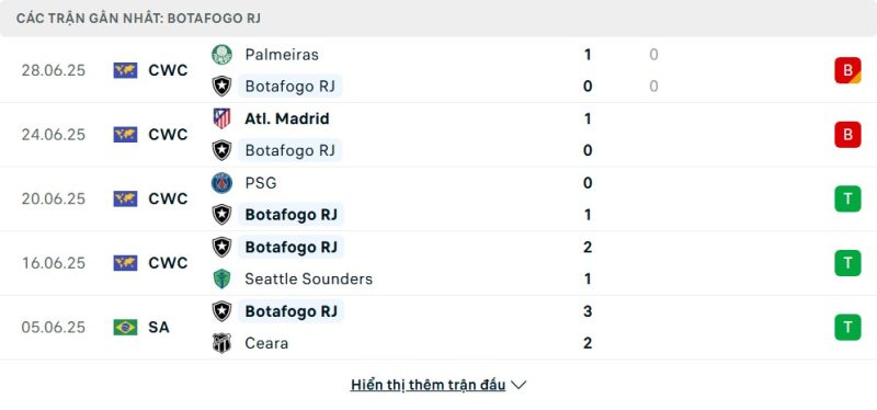Bên kia chiến tuyến, Botafogo đang sở hữu chuỗi phong độ tích cực hơn. Họ vừa đánh bại Ceará trong một trận cầu kịch tính, sau khi từng vượt qua Santos ngay tại Vila Belmiro và cầm hòa Flamengo ở trận derby. Dưới sự điều hành tạm thời trước khi HLV Davide Ancelotti chính thức tiếp quản, đội bóng này vẫn cho thấy sự ổn định trong cả tổ chức lẫn tinh thần. Cá nhân như Igor Jesus đã liên tục ghi dấu ấn với phong độ cao, góp phần tạo nên một hàng công đáng gờm ở thời điểm hiện tại.